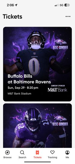 Ravens vs Bills Tickets 9/29$300Baltimore, MD