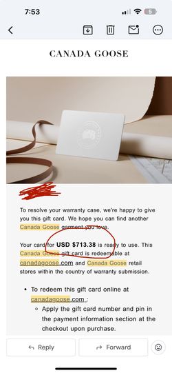 Canada Goose Gift Card $713.38$650Glenview, IL