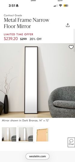 West Elm Metal Frame Narrow Floor Mirror 14 X 72”$200Fountain Valley, CA