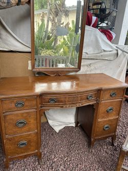 1930s Hibriten Walnut Vanity Set, Mirror And Chair$350Santee, CA