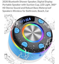 2026 Bluetooth Shower Speaker, Digital Display Portable Speaker with Suction Cup, LED Light, 360° HD Stereo Sound and Robust Bass Waterproof Speakers $25Houston, TX