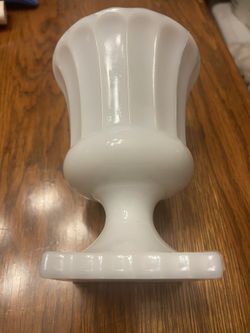 PRICED FOR QUICK SALE - Vintage Fluted Milk Glass Grecian Style Pedestal Planter, Hazel-Atlas Glass, USA - Qty: 1$22Schertz, TX