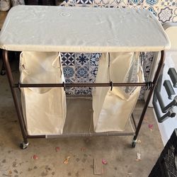 Rolling Laundry Basket - 3 Section - W/ Ironing Board - Cream/Brown Color $30Chandler, AZ