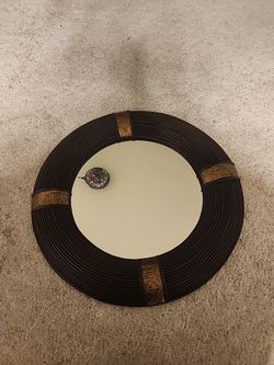 Vintage round mirror with a handmade wooden frame.$100Sterling Heights, MI