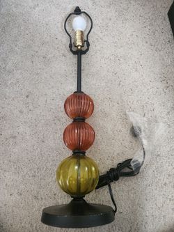 Vintage 70s Orange and Yellow Glass Ball Table Lamp, Tall Hippy Retro Lamp,Midcentury Modern Cylindrical Space Age Table Lamp Metal Base$70Sterling Heights, MI