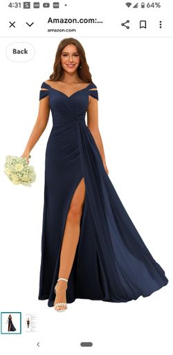 Clothfun Off The Shoulder Pleated Dress Long Chiffon Formal With Slit $30Queens, NY