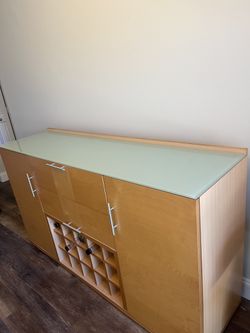 Modern dresser with a glass top and wine rack$80Tamarac, FL