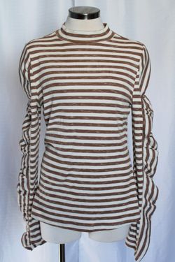 Doe & Rae Mock Neck Ruched Stripe Top – Brown/Cream – L$15Brooklyn Center, MN