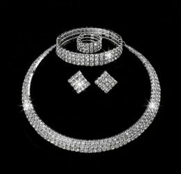 Brand NEW , 4 Pcs Rhinestone Crystal Jewelry Set With Choker Necklace & Stud Earrings & Bracelet & Ring For Women Wedding Or Gift $45Redmond, WA