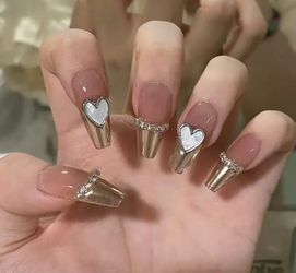 Brand NEW, Long Press On Nails, French 3D Heart Artificial Rhinetones Fake Nails, Full Cover Nails For Women And Girls$15Redmond, WA