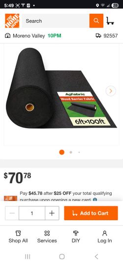 6 ft. x 100 ft. Landscape Heavy Non-Woven Ground Cover Weed Barrier Fabric for Gardening Mat and Raised Bed$35Riverside, CA