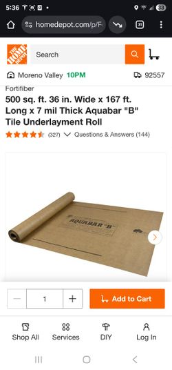 500 sq. ft. 36 in. Wide x 167 ft. Long x 7 mil Thick Aquabar "B" Tile Underlayment Roll$15Riverside, CA
