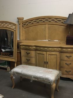King Size Bed 9 Drawer Dresser With Mirror And Bench $1,500San Bernardino, CA