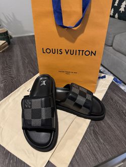 Louis Vuitton MIAMI MULE, Size MENS 8. This Is A Sleek Flather Sandal With A Oversized Damier Graphite Pattern Extremely Popular.$250Las Vegas, NV