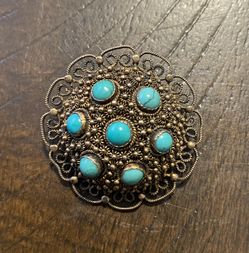 Antique Chinese Sterling Silver Turquoise Brooch$80Quartz Hill, CA