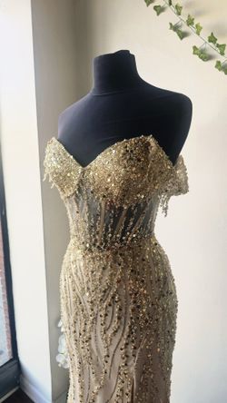 Gold / Champagne Off the shoulder fitted dress/ SIZE SMALL