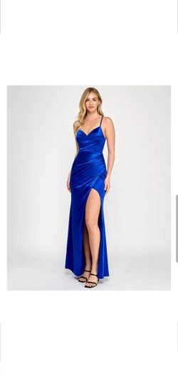 Royal Blue satin maxi dress with adjustable straps and a flattering fit.