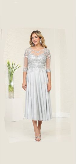 Silver Illusion Scoop Tea Length Dress