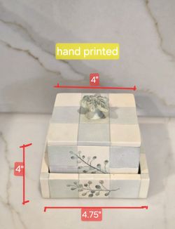 Hand Printed Ceramic Box Tray Set Leaf Knob 4.75"$20Monrovia, CA