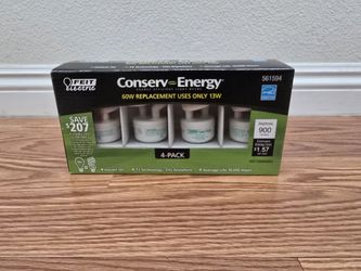FEIT Electric Conserve Energy 60W Equivalent CFL Light Bulbs 4-Pack$15Monrovia, CA