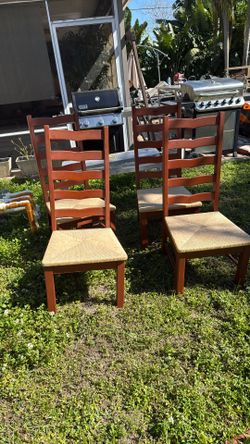 Four Wood Ladder Back Chairs With A Rope Straw Type Seat$50Fort Lauderdale, FL