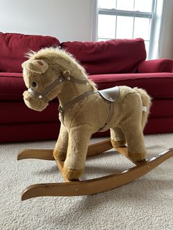Vintage 90s Chrisha Playful Plush Rocking/Rolling Kids Wood Horse w/Sound$100Bethlehem, PA