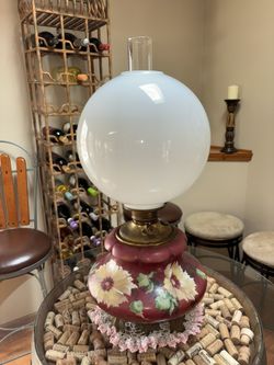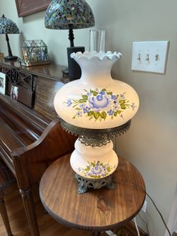 Antique Victorian gone with the wind oil lamp hand-painted floral glass non-converted authentic Excellent condition$190Glen Ellyn, IL