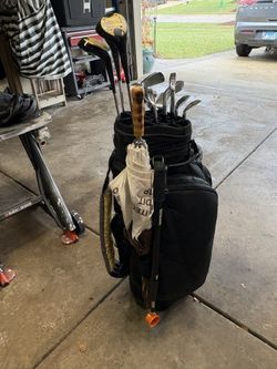 Complete golf set of Wilson professional irons & 1200 LT woods P/W Deep Red Putter 3 thru 9 irons 1-3 drivers + bag on wheels + balls & tees+ umbrell$150Glen Ellyn, IL
