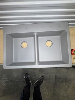 Brand new Elkay Quartz Classic 33”x 22” x9” equal double bowl drop in sink greystone color kitchen, prep, bar or laundry composite quartz sink durable$225Lombard, IL