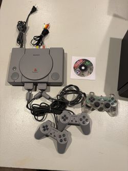 Sony PlayStation game console bundle gray w/ 3 controllers one game + vintage storage container$148Lombard, IL