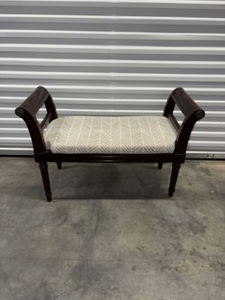 Regency style mahogany bench w/ scrolled curved arms classic solid wood frame window or bed end Excellent condition$60Glen Ellyn, IL