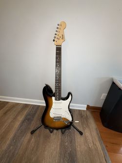 Fender electric Guitar starter bundle Squire Bullet Strat brown sunburst 6 string 20-fret W/gig bag case Marshall Amp, strap, stand & cord. Stratoca$198Glen Ellyn, IL