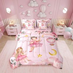 Comforter Bedding Set 7 Piece for Girls - Pink Fairy On A Swing Twin Butterflies, Moon and Stars $35Port St. Lucie, FL