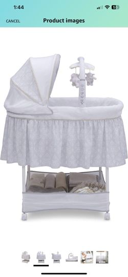 Simmons Kids Gliding Bedside Bassinet - Portable Crib with Activity Mobile Arm Featuring Spinning Toys, Vibration, Nightlight and Music, Peacock$60Lynwood, CA