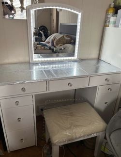Luxe Vanity Light Up With Mirrored Table And Stool$600La Gurda Arpt, NY