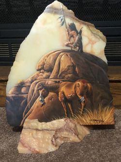 VINTAGE BEAUTIFUL NATIVE AMERICAN OIL PAINTING (on Marble) By VIC ADAMS$150Jacksonville, TX