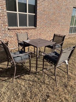 Good sturdy patio bar height table with 4 bar stools$125Prosper, TX