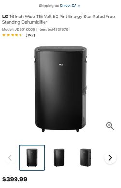 LG 16 Inch Wide 115 Volt 50 Pint Energy Star Rated Free Standing Dehumidifier$200Lancaster, CA