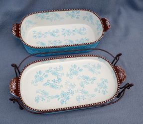 Temp-tations Floral Lace rectangular tray is a 4.0 QT ceramic dish AND another dish AND metal holder$100West Hollywood, CA