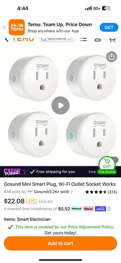 Gosund Mini Smart Plug, Wi-Fi Outlet Socket Works With Alexa And Google Home, Remote Control With Timer Function, No Hub Required, ETL FCC Listed (4 P$12City Of Industry, CA
