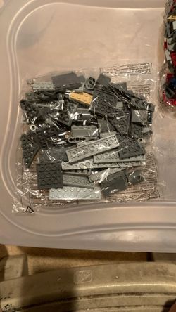 This is a bulk lot of assorted gray LEGO bricks and pieces. The lot includes various brick types, such as plates, slopes, and specialty pieces. The $10San Pedro, CA