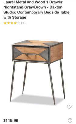 Laurel Metal And Wood Drawer Nightstand$35Anaheim, CA