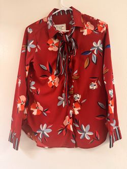 Abercrombie & Fitch Women's Red Floral Tie-Neck Long Sleeve Blouse with Striped Tr$17Whittier, CA