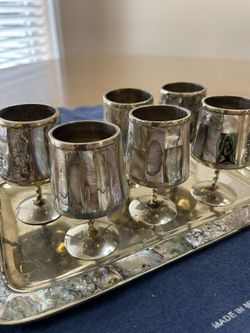 Alpaca Vintage Silver & Abalone Cordial Mini Goblet Set Made in Mexico$40Port St. Lucie, FL
