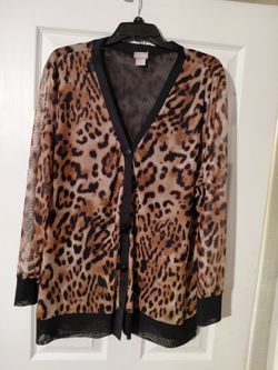 Chico’s Animal Print button down Cardigan with sheer sleeves Size 3, $10 pre-owned$10Red Oak, TX