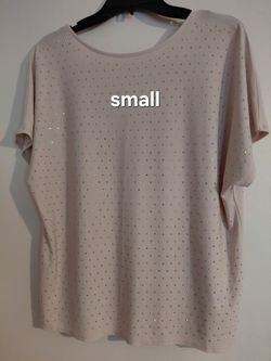 Jennifer Lopez Gold type Metal Studs/Rhinestone Shoulder Top, Cream/tan color with V-shape scoop back sz Small $15,