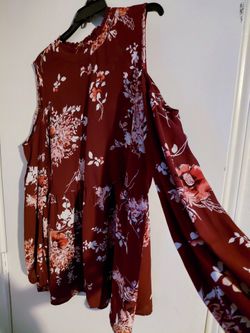 Bobeau Burgundy Floral Top Cold Shoulders with flare botto., size 1X $15$15Red Oak, TX