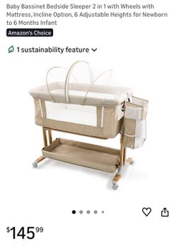Baby Bassinet Bedside Sleeper 2 in 1 with Wheels with Mattress, Incline Option, 6 Adjustable Heights for Newborn to 6 Months Infant$100Menifee, CA