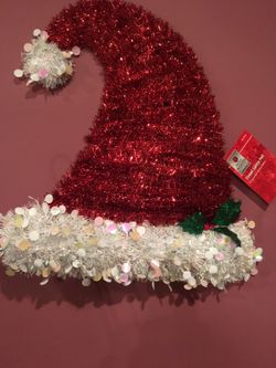 Christmas Decoration . Tinsel Santa hat hanging decoration , new with tag$1Eastlake, OH