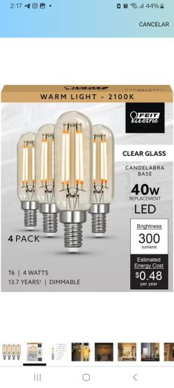 Feit Electric LED Candelabra Bulbs, Dimmable, 40W Equivalent, E12 Base, 2700K Soft White, Vintage B10 Candelabra Bulb, BPCFC40927CAFIL/4/RP, 4-Pack$10Long Beach, CA